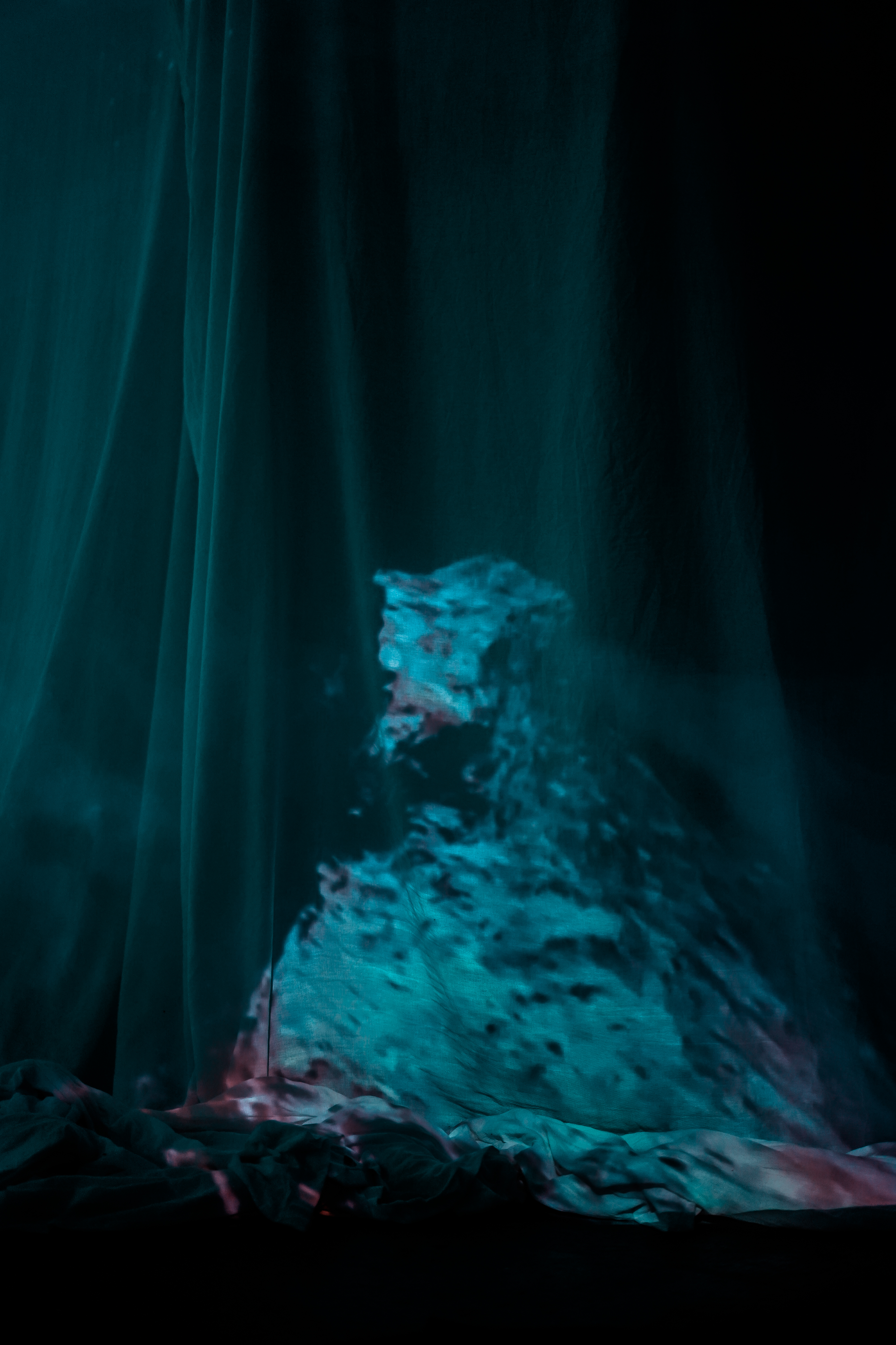 Audiovisual installation with 360 degree projection, which transforms the space into a transitory and enveloping one, generating sensations in the spectator of being in the depths of the sea, immense in an abstract world. The underground location of the space gives input to the idea of going down and meeting a bright world in a space in which light is not its main feature.